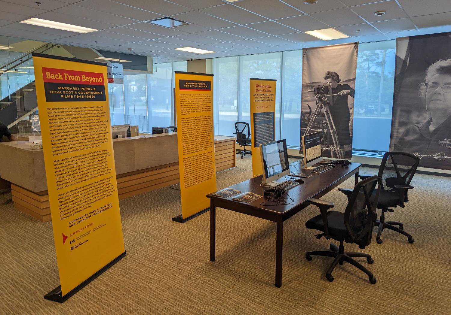 Below is a photograph of a recent exhibition I coordinated at the Archives of Ontario in Summer 2023 titled Margaret Perry: A Life in Film. The traveling exhibition was initially put on at the Nova Scotia Archives and curated by Jennifer VanderBurgh (St. Mary’s University) and Carla Taunton (NSCAD), and I collaborated with them to do the exhibition design to recreate it at the Archives of Ontario as a part of that year’s Congress of the Social Sciences and Humanities at York University.
